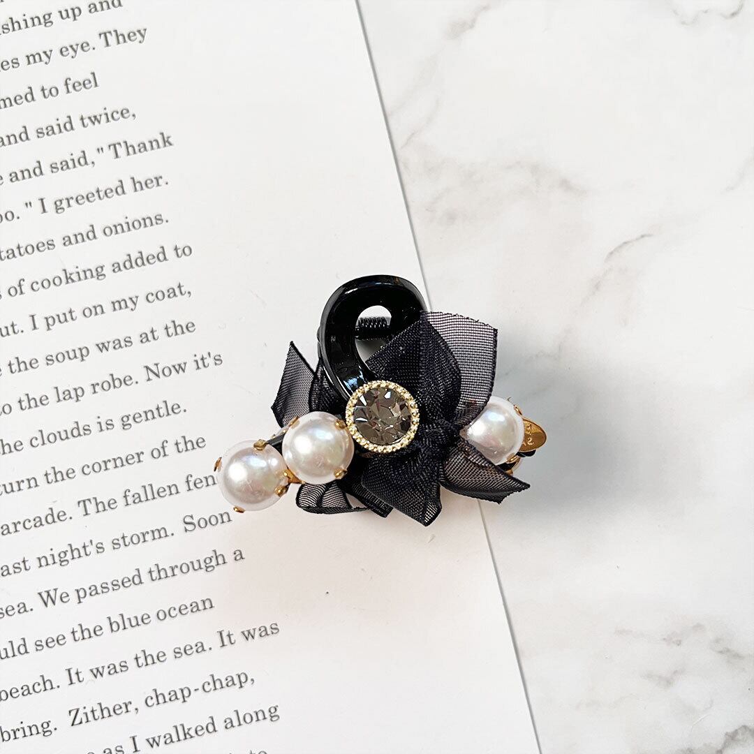 ビジュー付きミニクリップ パール オーガンジー フラワー レディース ヘアアクセサリー まとめ髪 ヘアアレンジ w-0294