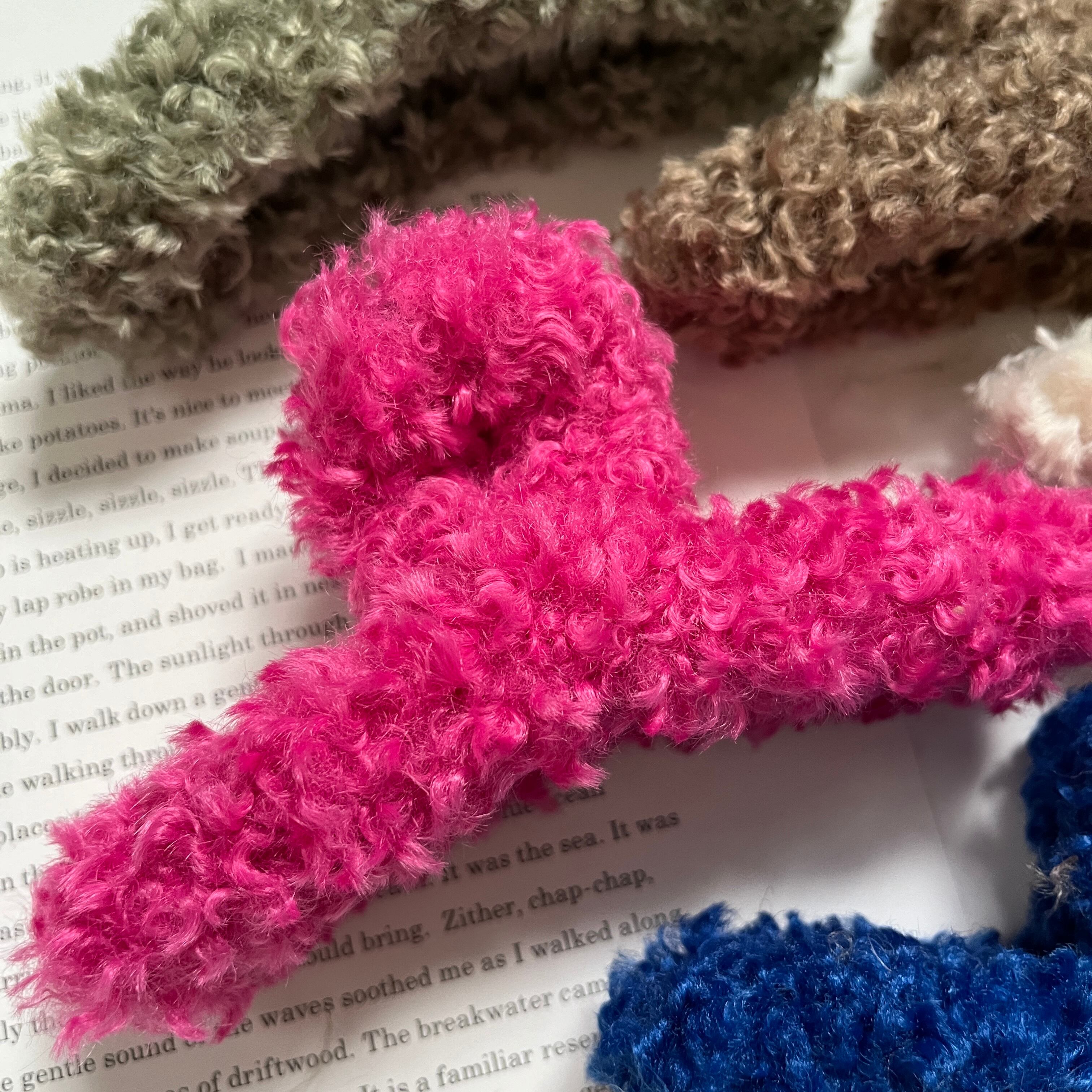 プードルのような、もこもこ感が愛らしいボア素材のバンスです。