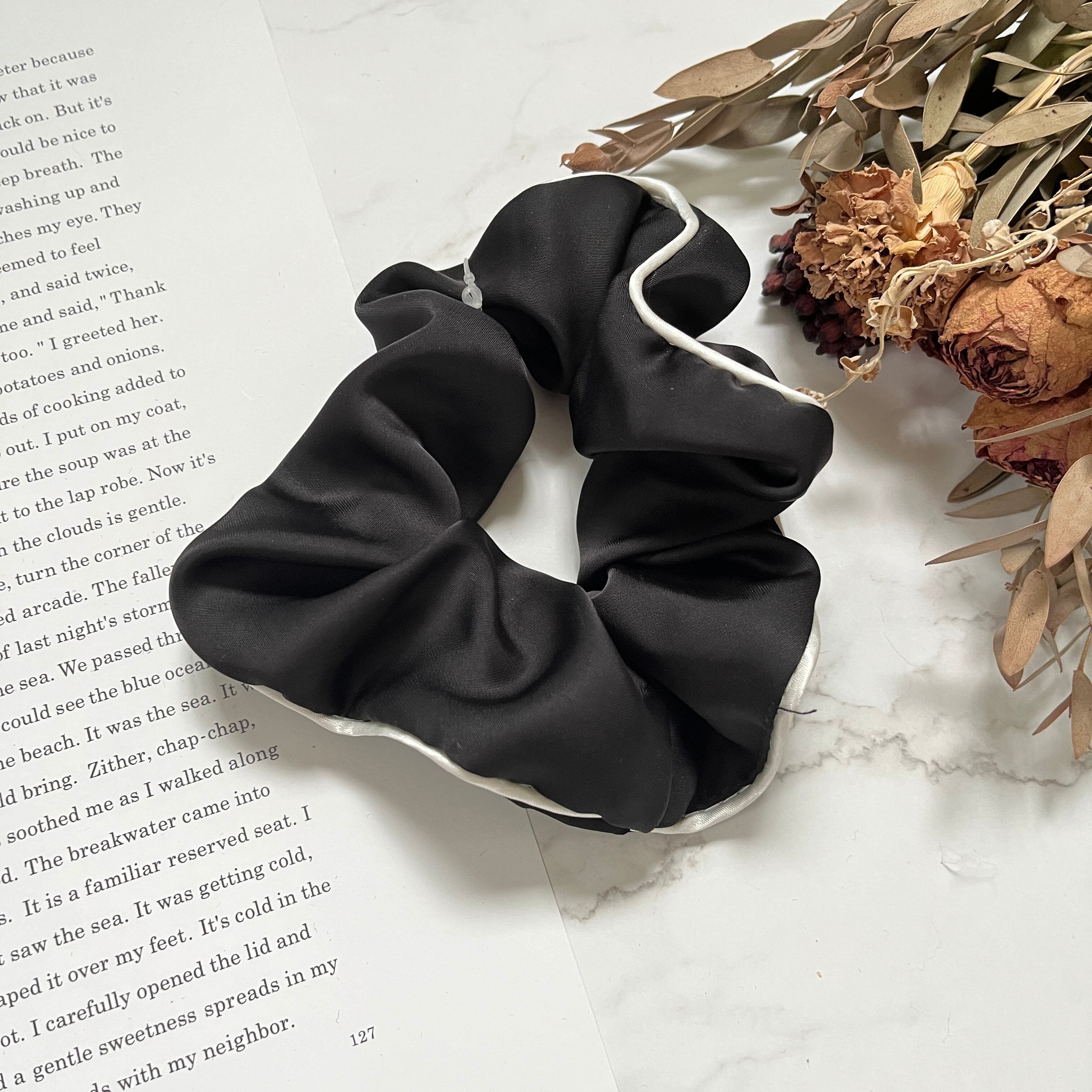 サテンカラーパイピングシュシュ レディース ヘアアクセサリー シュシュ ポニーテール まとめ髪 ヘアアレンジ w-0012