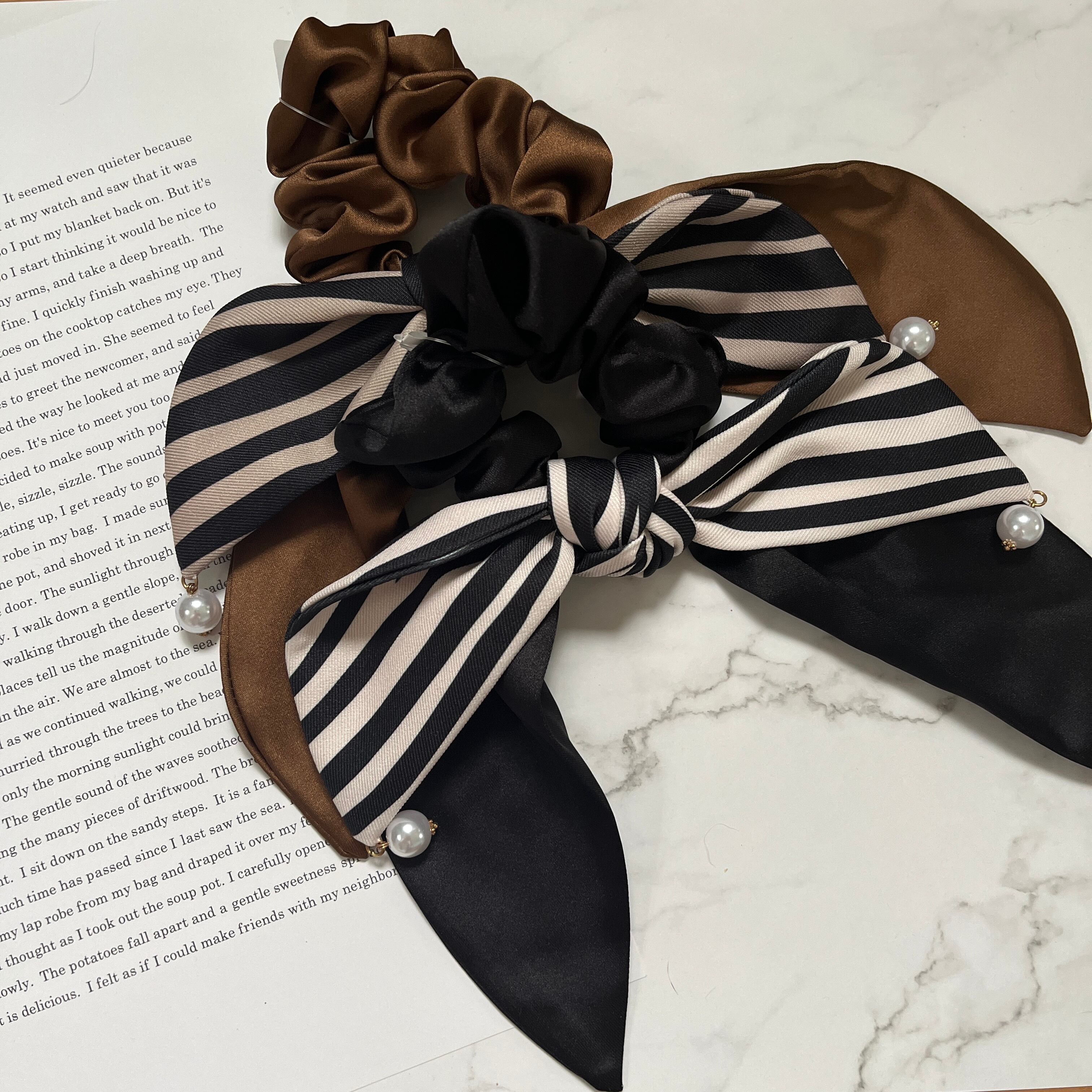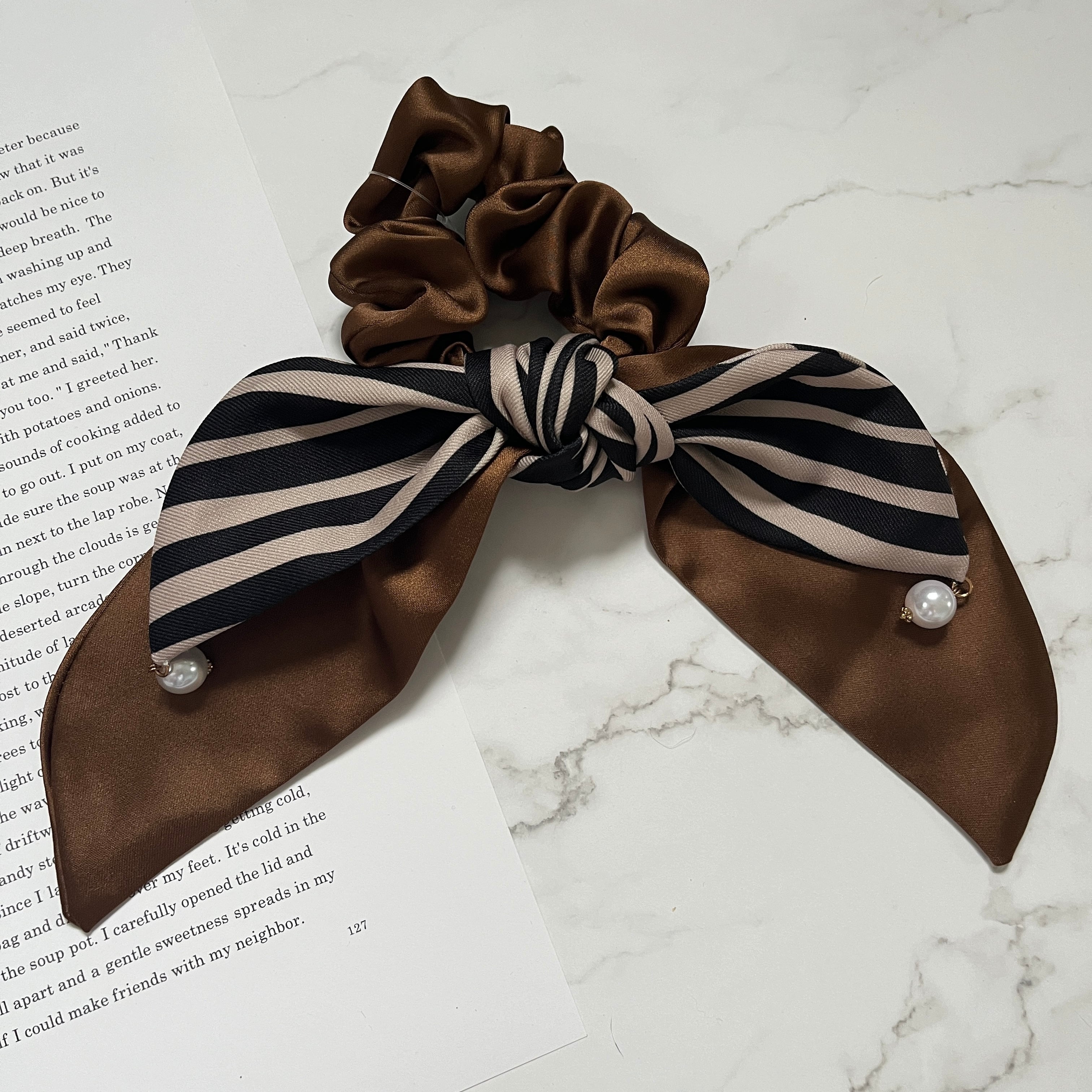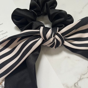 パール付きストライプビッグリボンシュシュ レディース ヘアアクセサリー シュシュ ポニーテール まとめ髪 ヘアアレンジ w-0026