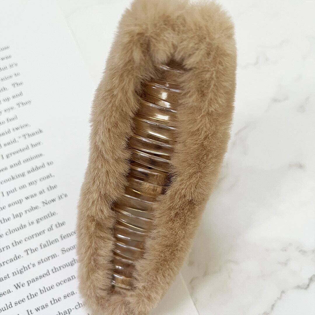 ファーヘアバンスクリップ チャーム付き レディース ヘアアクセサリー バレッタ ヘアクリップ ハーフアップ まとめ髪 ヘアアレンジ w-0038