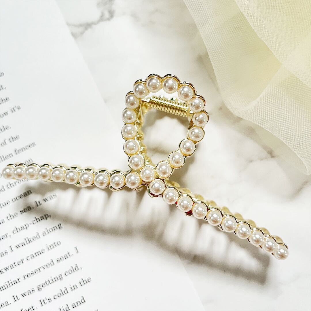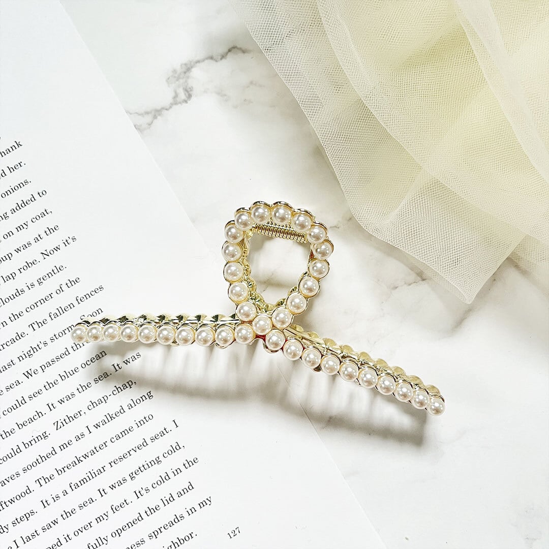 パールヘアバンスクリップ レディース ヘアアクセサリー バレッタ ヘアクリップ ハーフアップ まとめ髪 ヘアアレンジ w-0068
