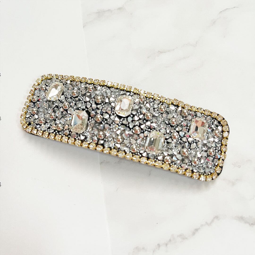シンプルなスクエアピンもきらきらビジューで大人かわいい上品なヘアアレンジに♡