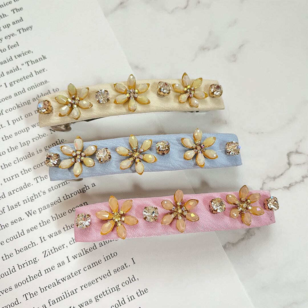 フラワーストーンバレッタ レディース ヘアアクセサリー ピン バレッタ まとめ髪 ヘアアレンジ w-0120
