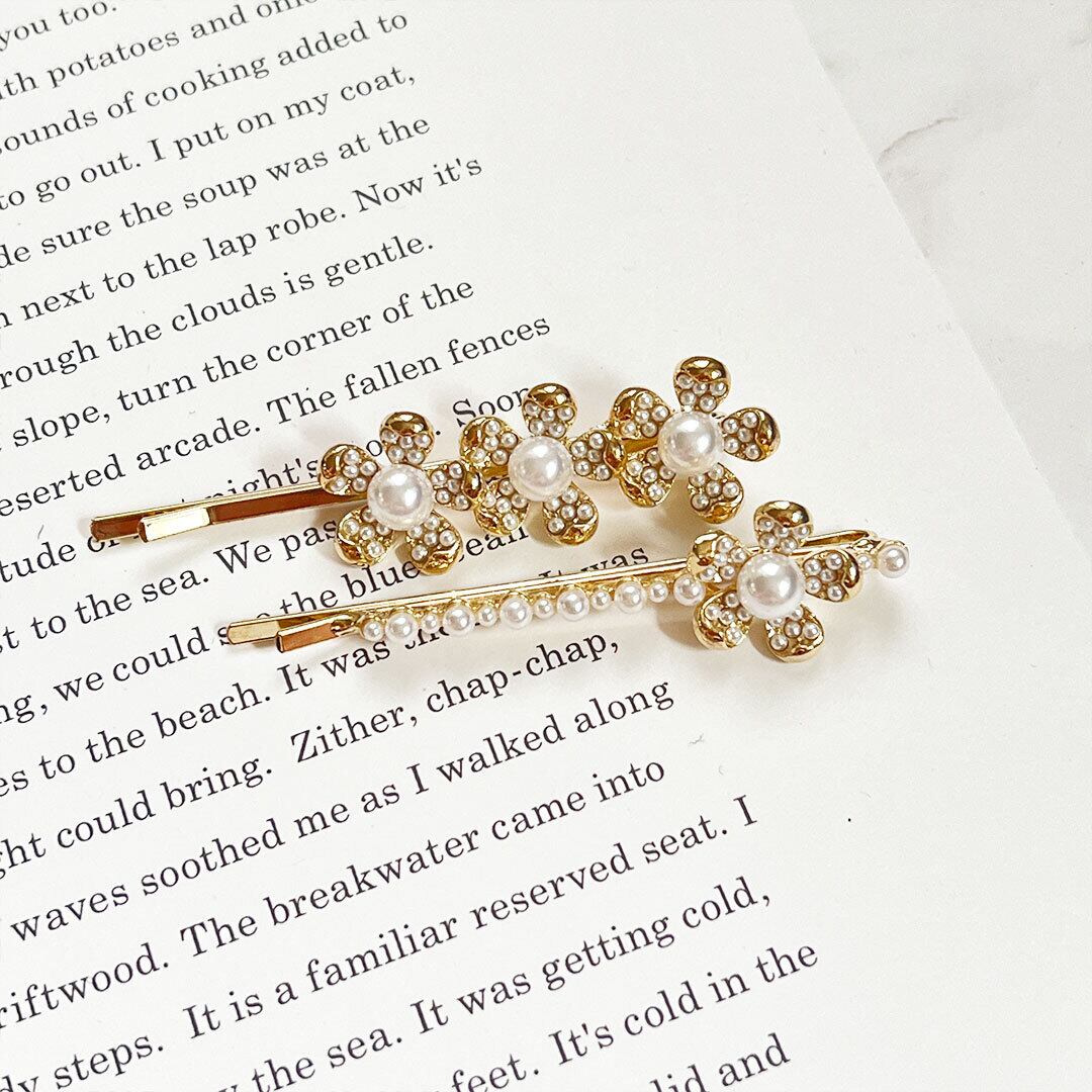パール×フラワー2本セットヘアピン 2P セット レディース ヘアアクセサリー ピン バレッタ まとめ髪 ヘアアレンジ w-0125