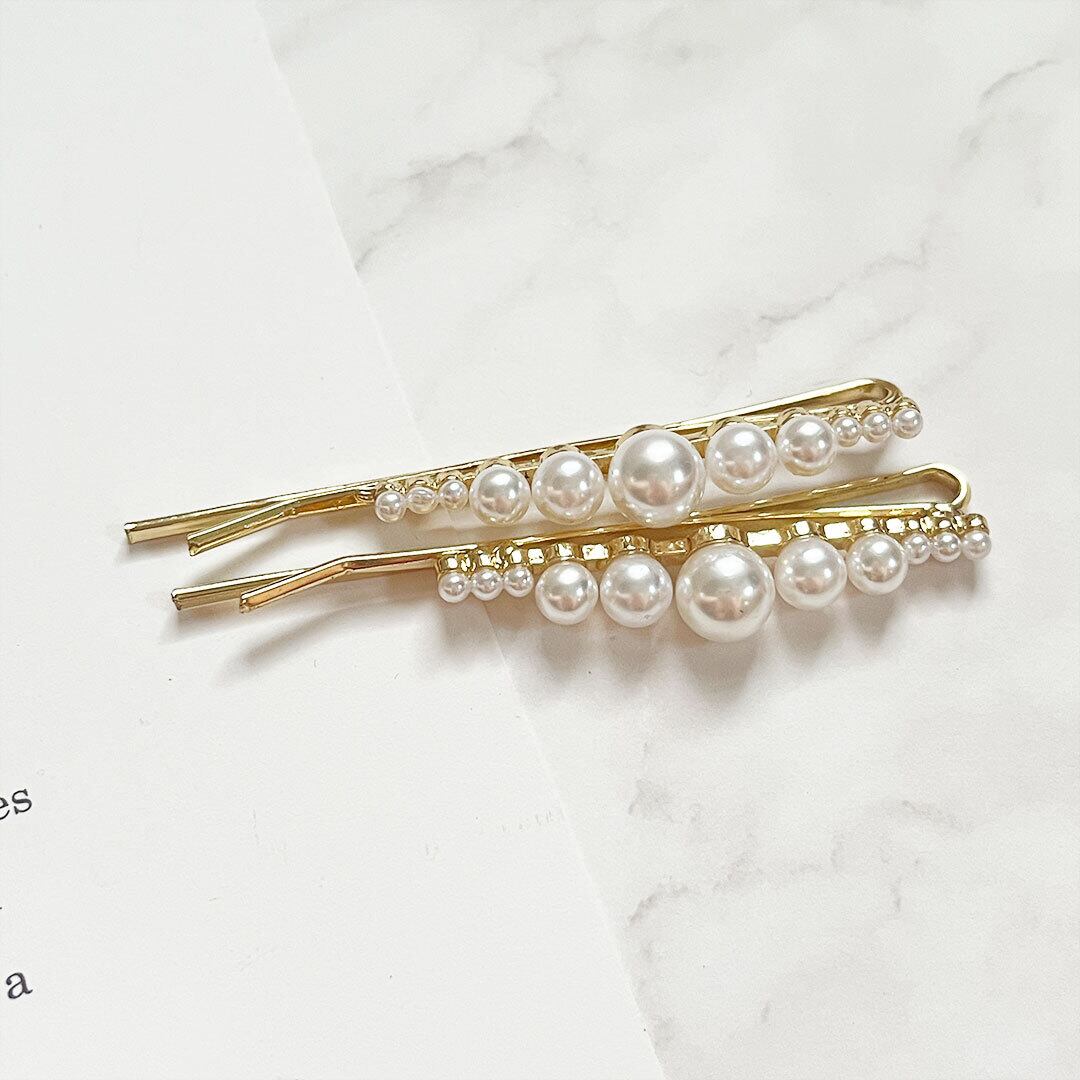 パールヘアピン2本セット 2P レディース ヘアアクセサリー ピン バレッタ まとめ髪 ヘアアレンジ w-0129