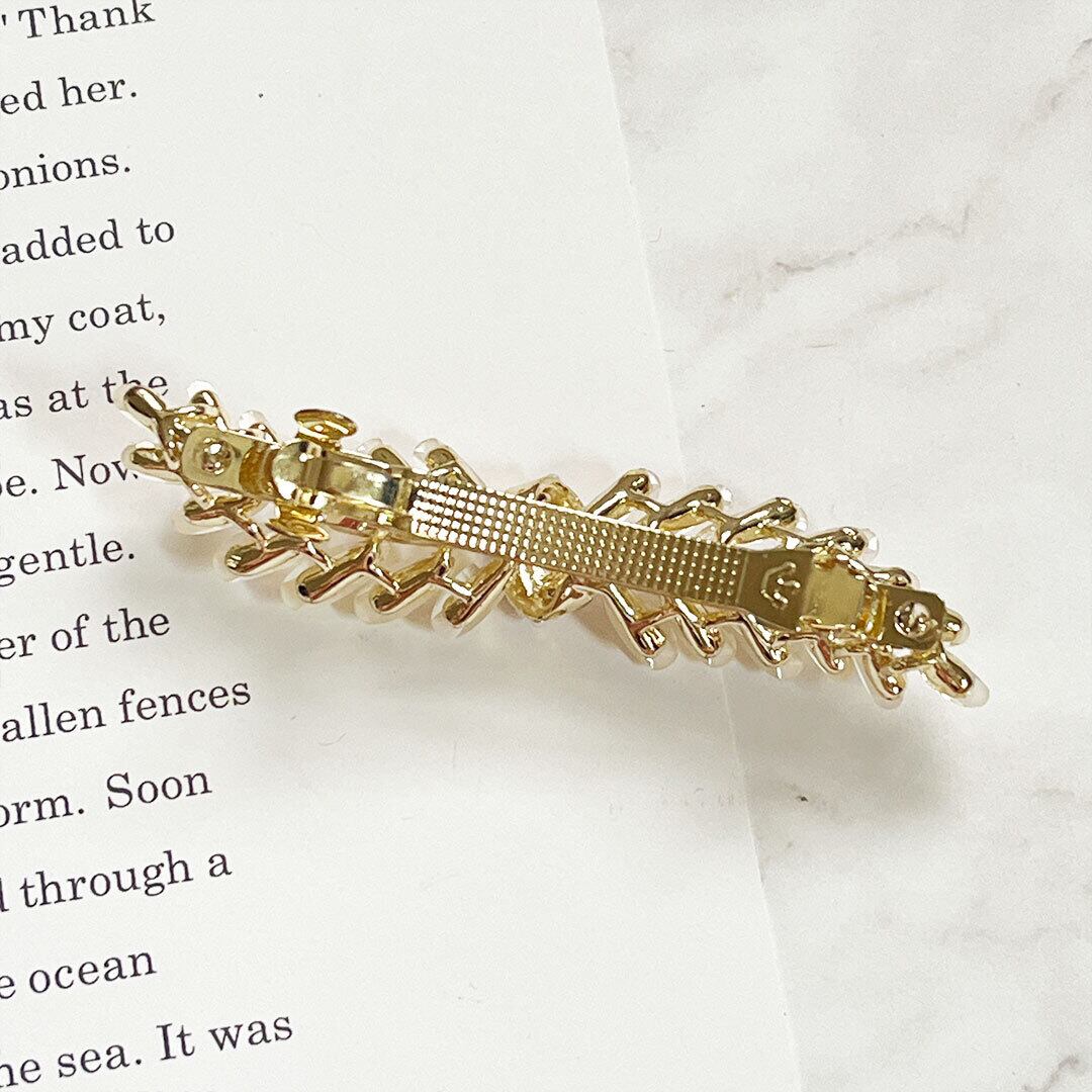 リーフモチーフのデザインがお洒落見えするヘアバレッタの登場。