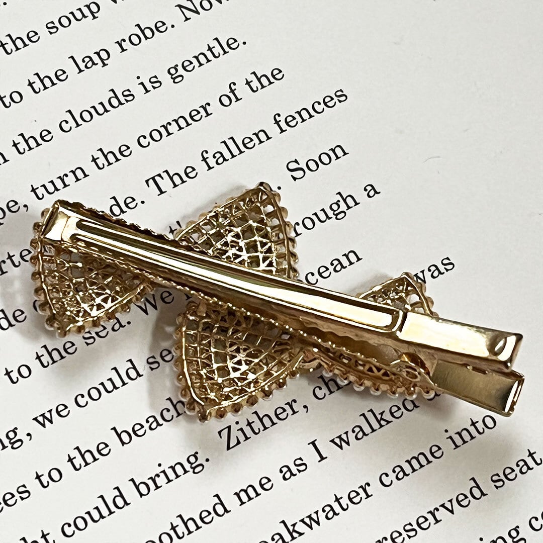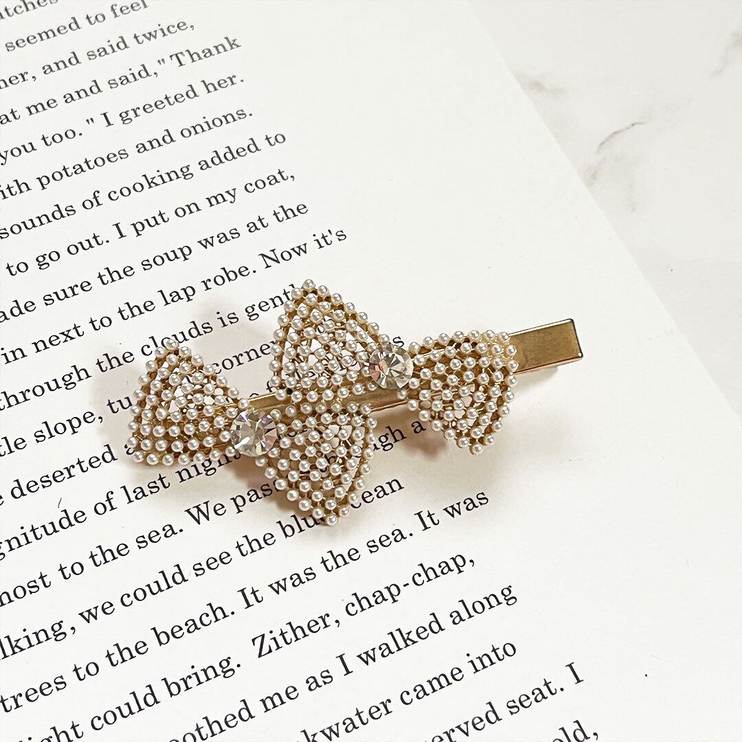 小粒のパールが上品な印象を与えてくれるリボンモチーフのヘアクリップの登場。