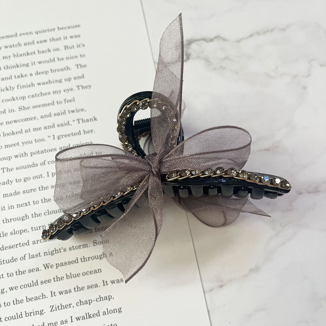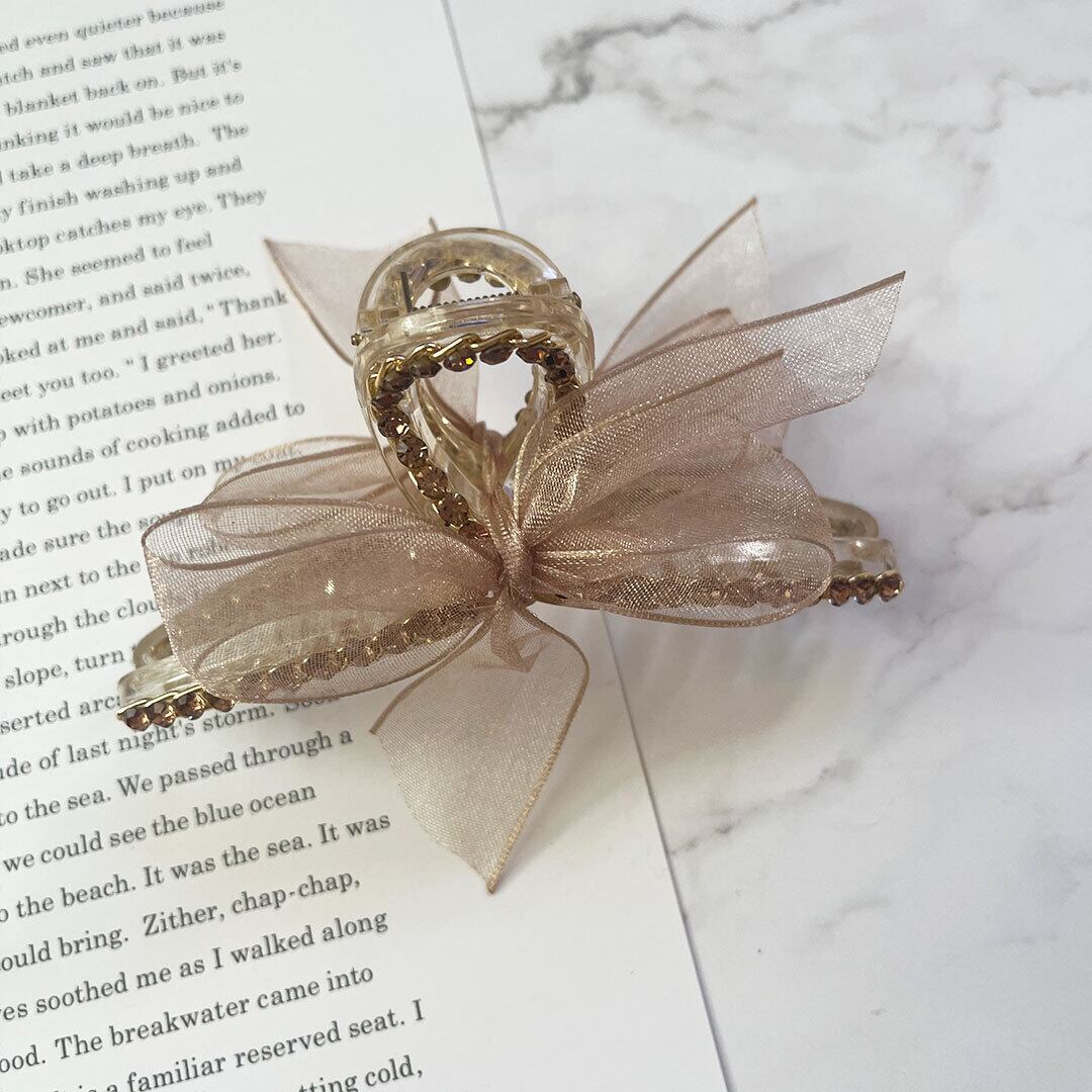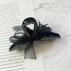 シアー リボンバンスクリップ オーガンジー ビジュー レディース ヘアアクセサリー まとめ髪 ヘアアレンジ w-0165