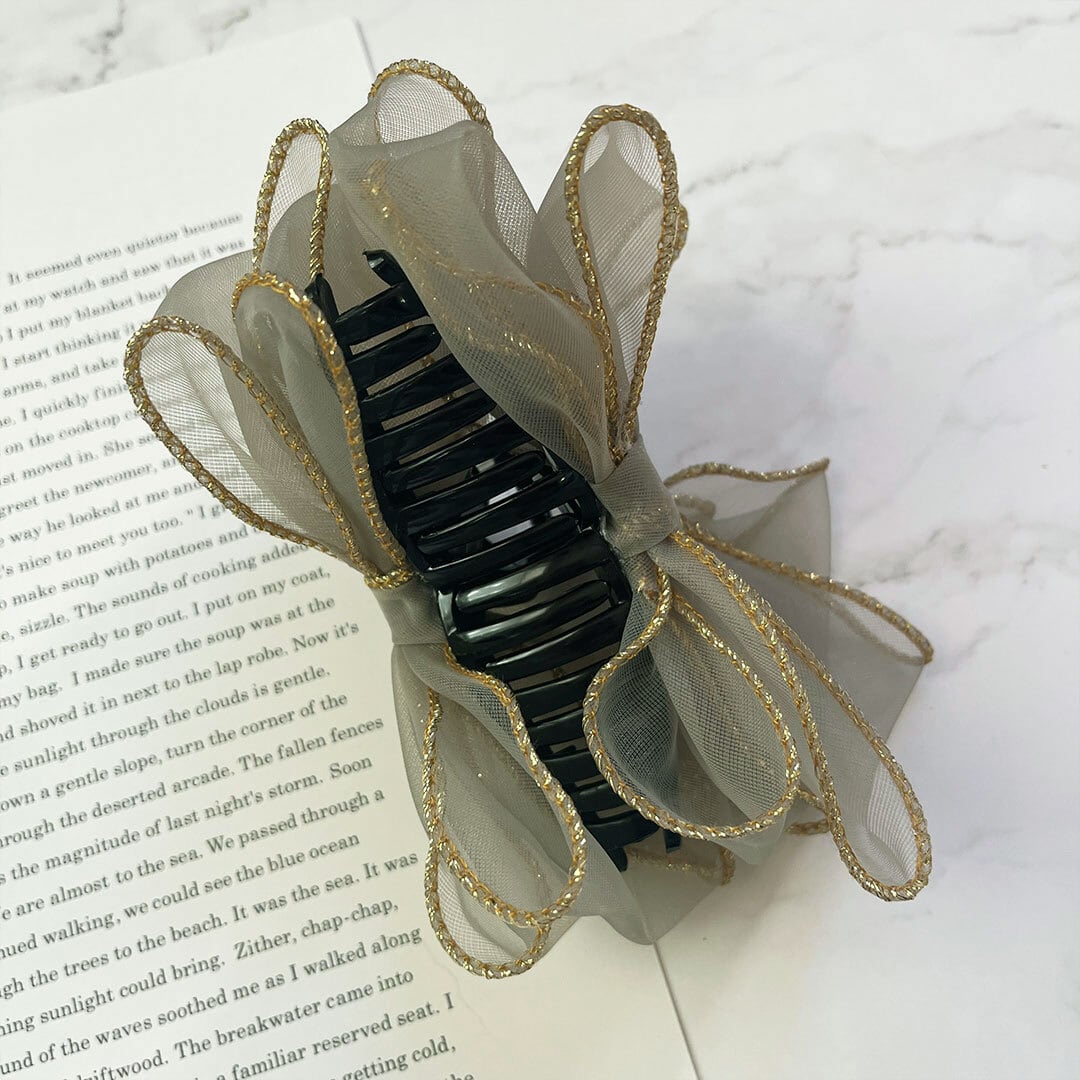 オーガンジーリボンバンスクリップ レディース ヘアアクセサリー まとめ髪 ヘアアレンジ w-0167