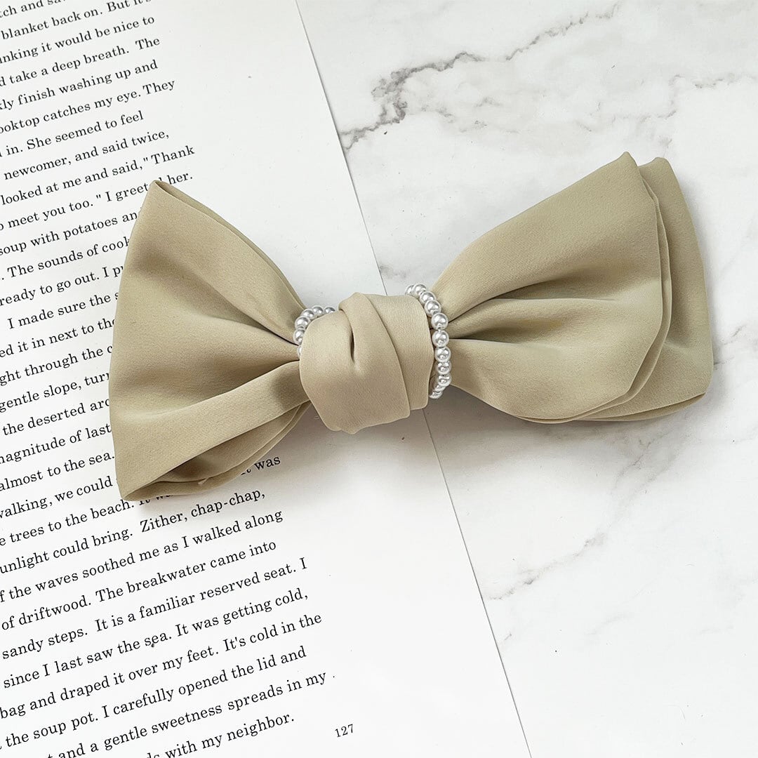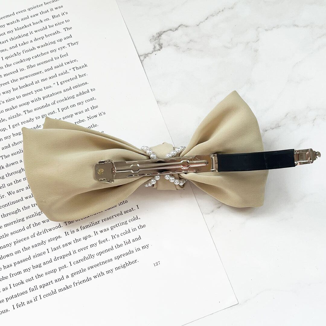 艶マットなサテン生地にパールの輝きをあしらった上品なヘアバレッタが登場♡