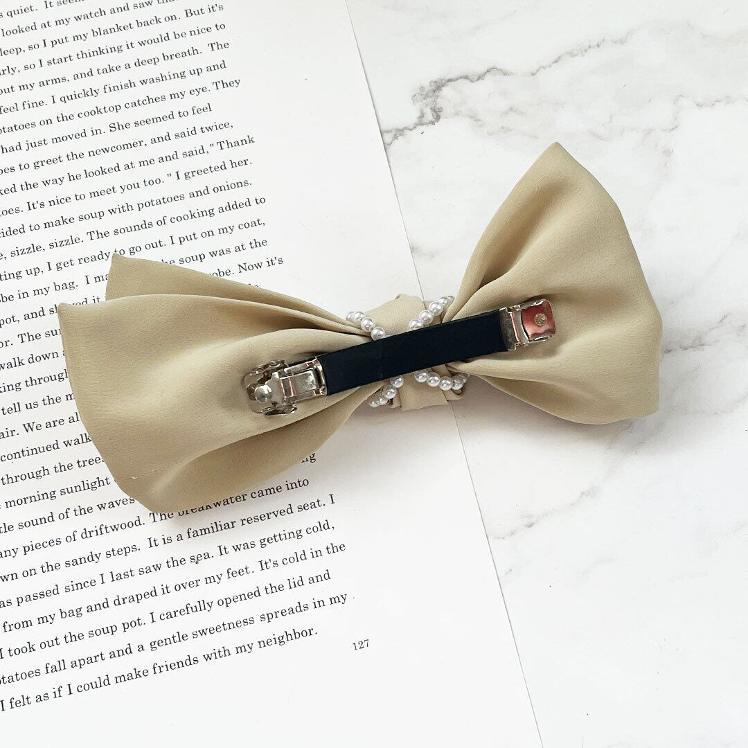 パール付きリボンバレッタ レディース ヘアアクセサリー まとめ髪 ヘアアレンジ w-0194
