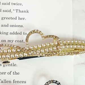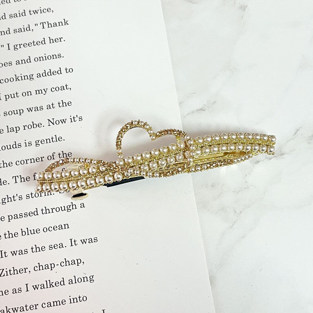 ハートモチーフパールヘアバレッタ ラインストーン レディース ヘアアクセサリー まとめ髪 ヘアアレンジ w-0238