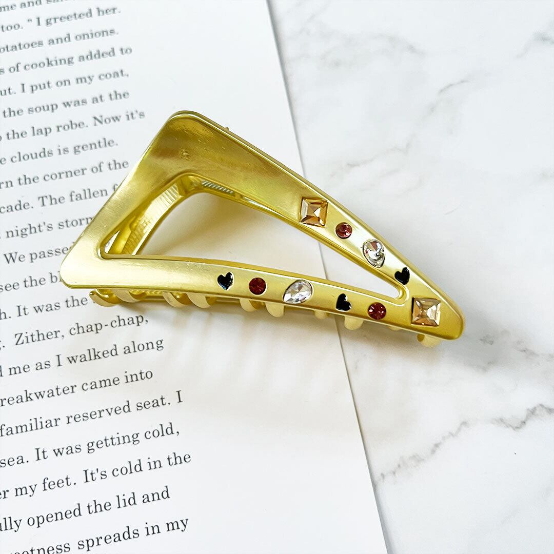 メタルトライアングルバンスクリップレディース ヘアアクセサリー 三角 まとめ髪 ヘアアレンジ ラインストーン w-0283